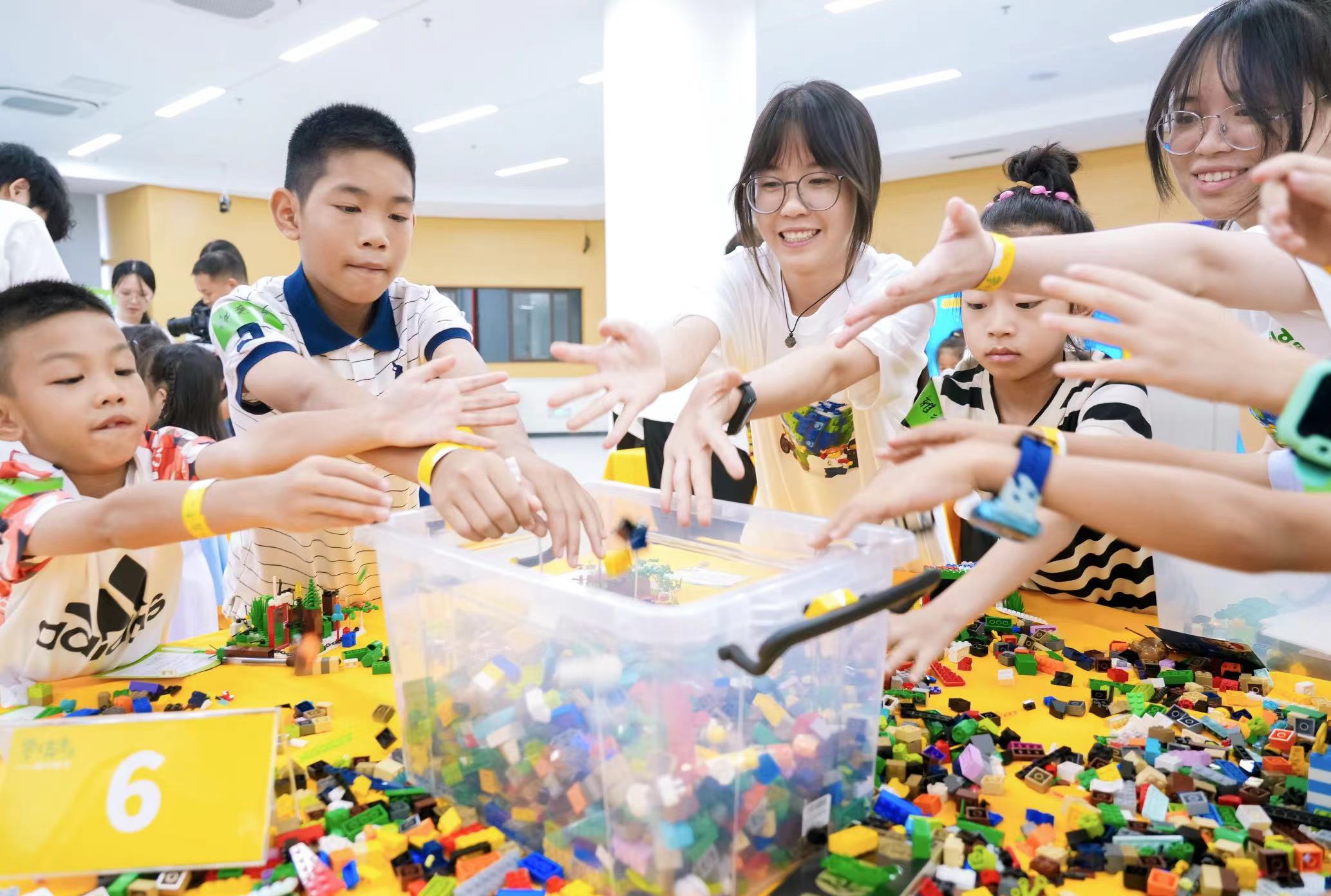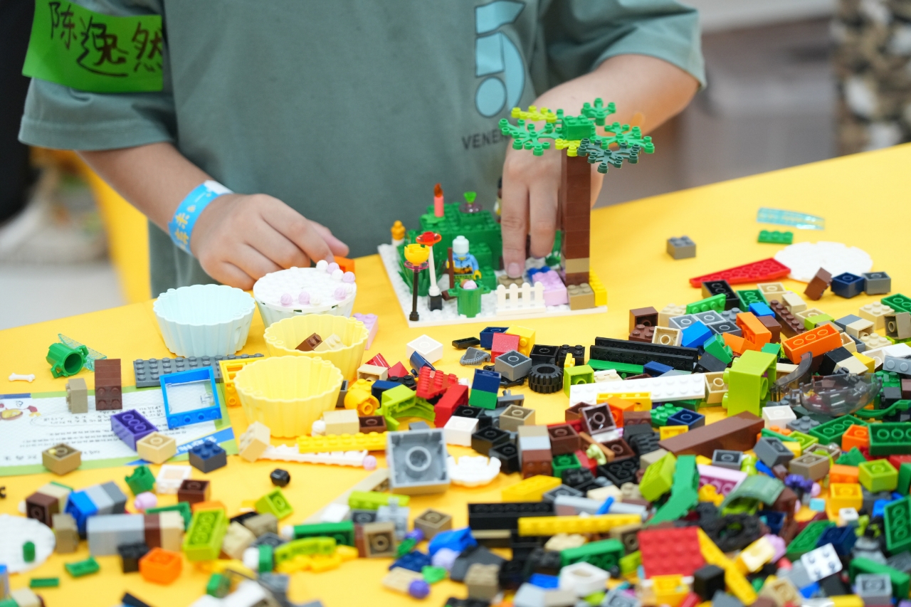 小朋友们在创意拼搭活动中展现了对可持续发展的热情和天马行空的创造力