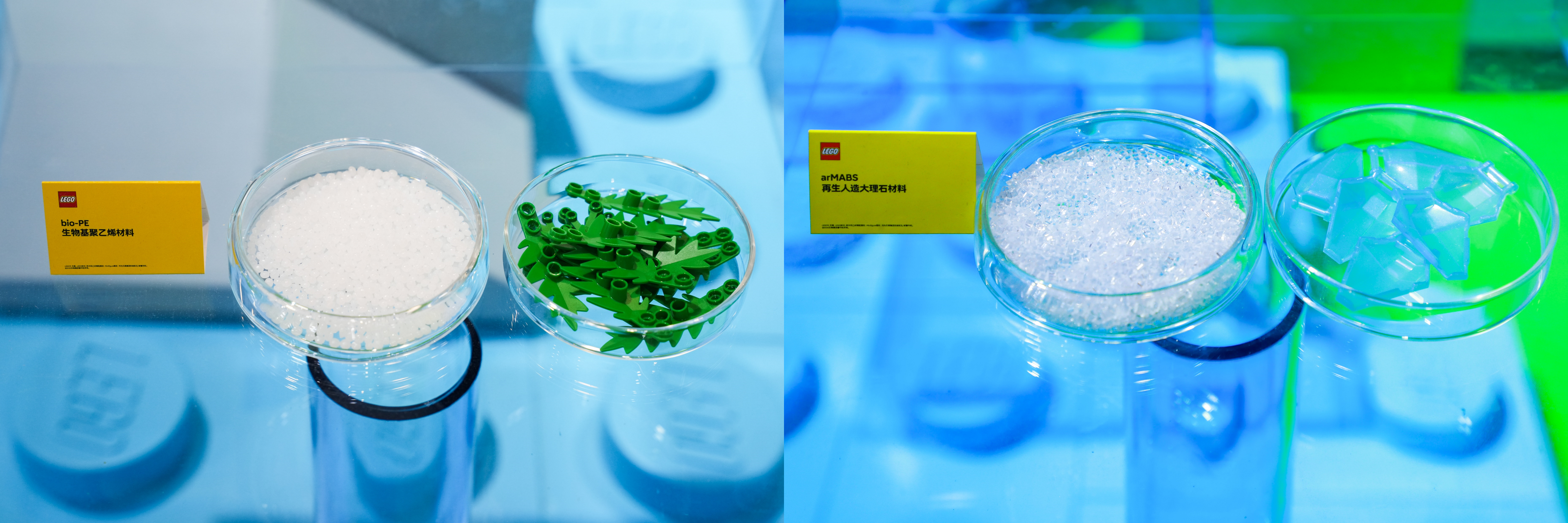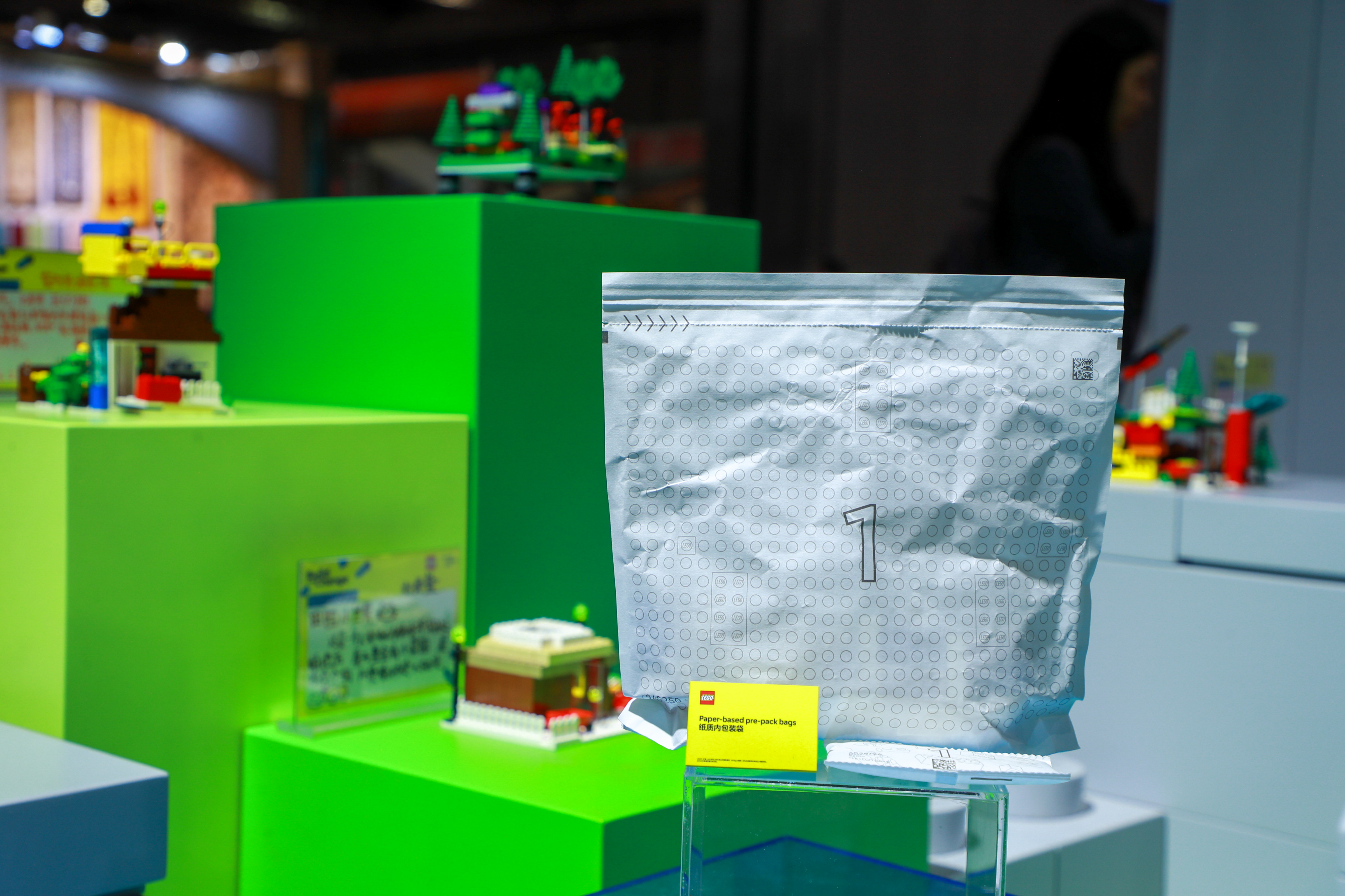 乐高集团在进博会展台上展示了由可持续材料生产的乐高®元件